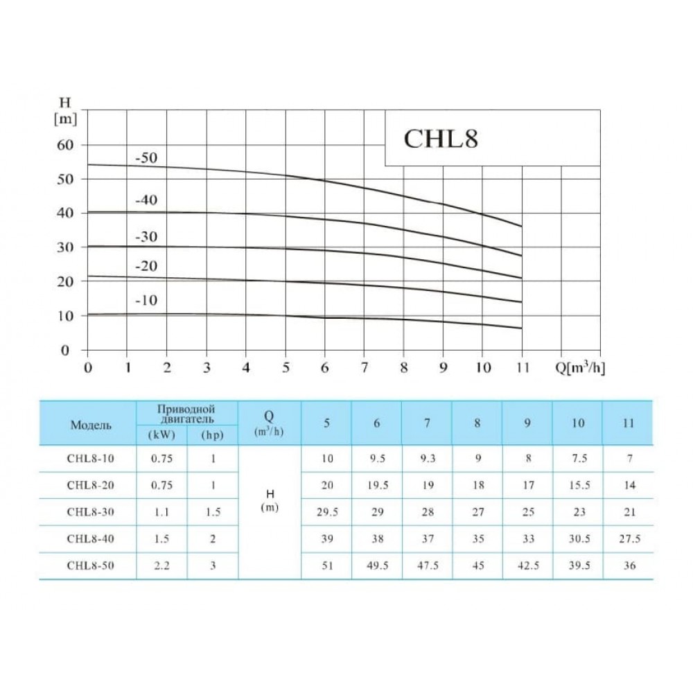 CNP CHL 8-50 LSWSR представляет собой трехфазный горизонтальный многоступенчатый несамовсасывающий центробежный электронасос, высокотемпературное исполнение. Насосный агрегат состоит из проточной части и электродвигателя с основанием. Гидравлическая часть собрана из секций (направляющий аппарат + рабочее колесо) на удлиненном валу электродвигателя, стянута с использованием специальных стяжек с резьбовыми концами и помещена в общий корпус, изготовленный из нержавеющей стали.